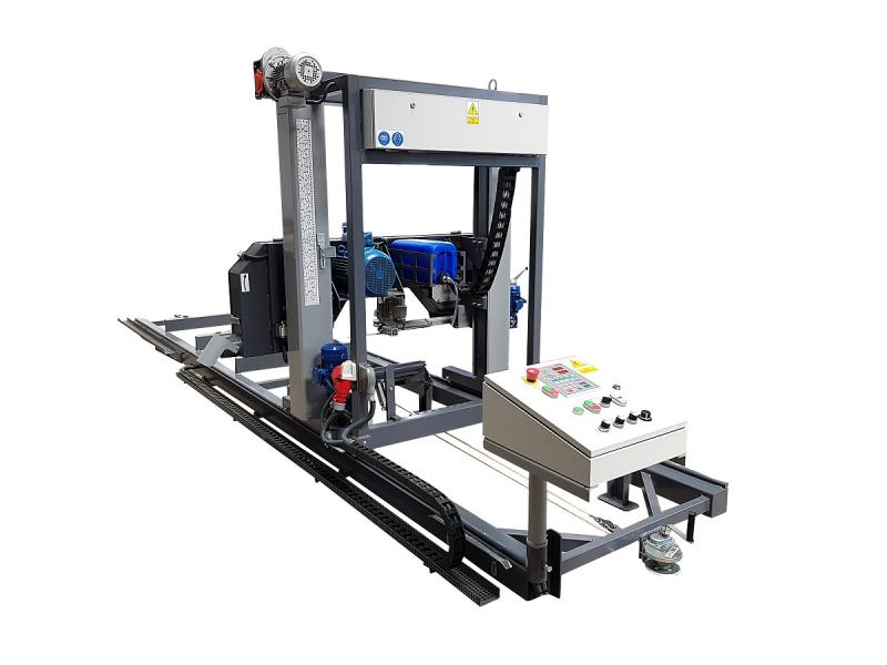 Salg / tilbudTrebearbeidingsmaskiner > BåndsagProdusent og type : PP 850 -Drekos made s-r.o Stand : Ny Strømforbruk : 8 kW Slag : Horisontal Maks stammediam. : 850 mm Bladbredde : 40 mm Maks. skjærelengde : 5 m Gripere for stammer : Hydraulisk variant Forskjærer : Elektrisk variant Sagens forflytning langs traseen : Elektrisk variant Stramming av bladet : Mekanisk variant Tilbehør : Heving av stammer, Forflytning av materiale, Lasterampe, Datamaskin (digital) Produksjonsår : 2025